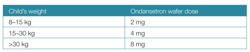 As a guide, the child should be given 10 mL/kg for each episode of diarrhoea or 2 mL/kg for each episode of vomiting.