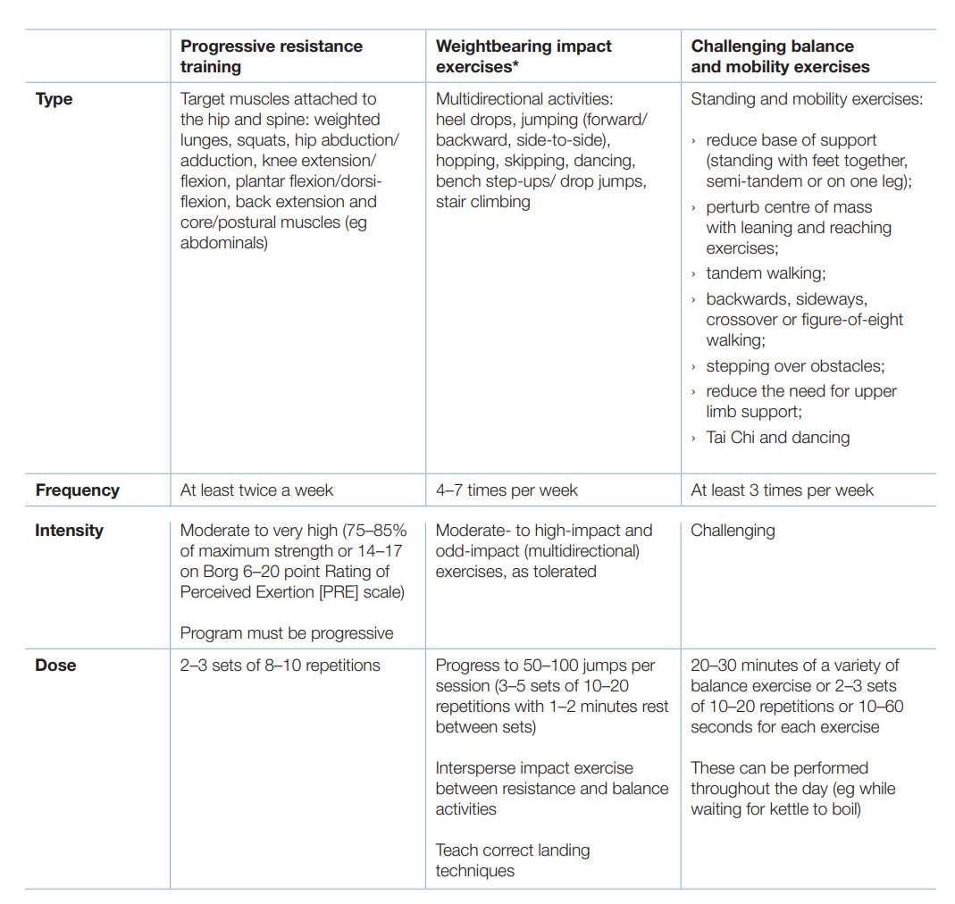 While low-impact activities such as walking are beneficial to general health, they do not improve bone density. To improve or maintain bone health, exercises need to create a ‘loading’ effect on the bone. However, relatively few loading cycles (repetitions) are needed – short bouts separated by periods of rest are more effective than the same number of loads performed all at once.