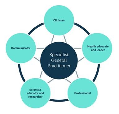 Figure 2. represents the interconnected nature of the five roles of the specialist general practitioner