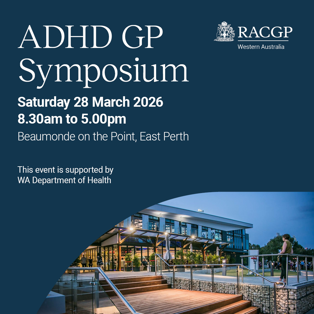 Join us for the ADHD WA Symposium, on Saturday 28 March 2026. This in-person event will be an excellent opportunity to connect with colleagues and stay informed about developments in ADHD care. The event will conclude with a sundowner from 4.00-5.00pm.